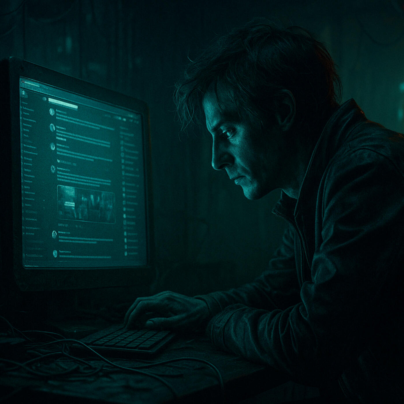 When he tries to resist, he discovers the chains. They are not made of iron, they have no real weight. But they suffocate as if they were. They are data threads, lines of code wrapping around his mind. The more he tries to move, the tighter they become. His name fades, his image disappears. Only numbers remain. He is no longer human, but a profile trapped inside an invisible cell.
