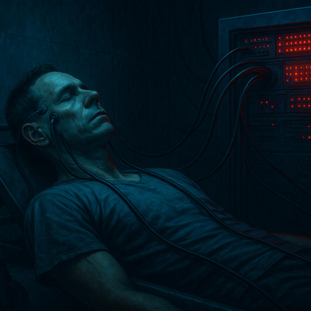 The body no longer belongs to him. It dissolves into fragments, spreading across the cloud. His skin is pixel, his voice is data, his memory a file stored in distant servers. He is nothing but a ghost, condemned to wander among machines, alive and erased at the same time. And when he tries to scream, he discovers he no longer has a mouth. Only silence.